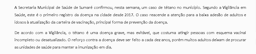 Informações e curiosidades do mundo da saúdeAlerta caso de tétano no interior de SP
